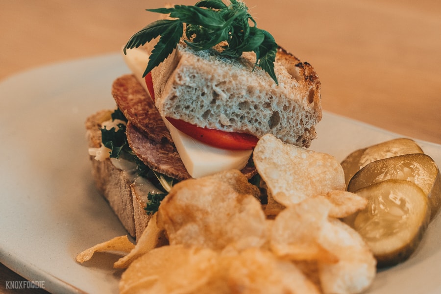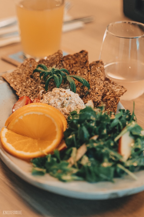Moving on through the facility is a lounging area and kitchen. Blühen called on chef Jon Newman to consult on the menu of hemp focused dishes. We had the smoky chicken salad with hemp seed and accompanying Paysan crackers. Probably the best chicken salad we’ve ever tasted and the salad dressing was exceptional. The Club consisted of local salami that chef Newman makes for Blühen on thick cut Paysan bread. We’ve sampled this charcuterie before and have thought about it ever since. So it’s great to know where we can go get our fix when we are craving it!