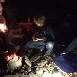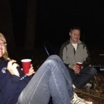 When Brian and Jerry got back, we started dinner (unfortunately we waited until a little too close to dark so it made it difficult). I loved Jerry’s quote, “This is why we enjoy going camping with E & M. If we’d came, we would have sandwiches and chips… they bring a gourmet diner” And we kinda did. We (OK M did most of the work on this one) had braised brats with grilled onion and belle peppers and ‘puppy chow’ for dessert.