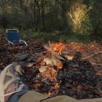 Once we got setup, we got a small fire going. The trees were at peak fall color and the weather was amazing. Sunny and in the 70’s. Tent setup was much easier than expected. I’d already warned everyone that there was likely to be a flurry of foul language when I started setting it up. Wow, they’re a lot easier than they were was a kid! in 15 minutes, we were all setup. Jerry had to meet us there because of work obligations and since we were in a location a little hard to describe, Brian went to meet him. M and I manned the fire (oh crap, my cigars were in the car with Brian… grrrrr!) and started sampling the beverages. M had made a Cherry, Apple, Pineapple vodka punch that was yummy, but I settled down with some Famous Grouse.